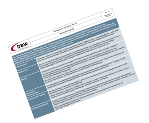 DBW is committed to the responsible use of resources and the environment even during production. DBW products contribute to environmental protection by reducing emissions, immissions and noise.