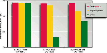 The high chemical resistance of powertex® is documented in corrosion tests with acid and alkali solutions. These standard test methods display the resistance to the type of substances that condense from exhaust gases within the muffler. powertex® fiber achieves the best marks for corrosion resistance.