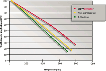 exposure to increasing temperatures. powertex® demonstrates superior performance when exposed to